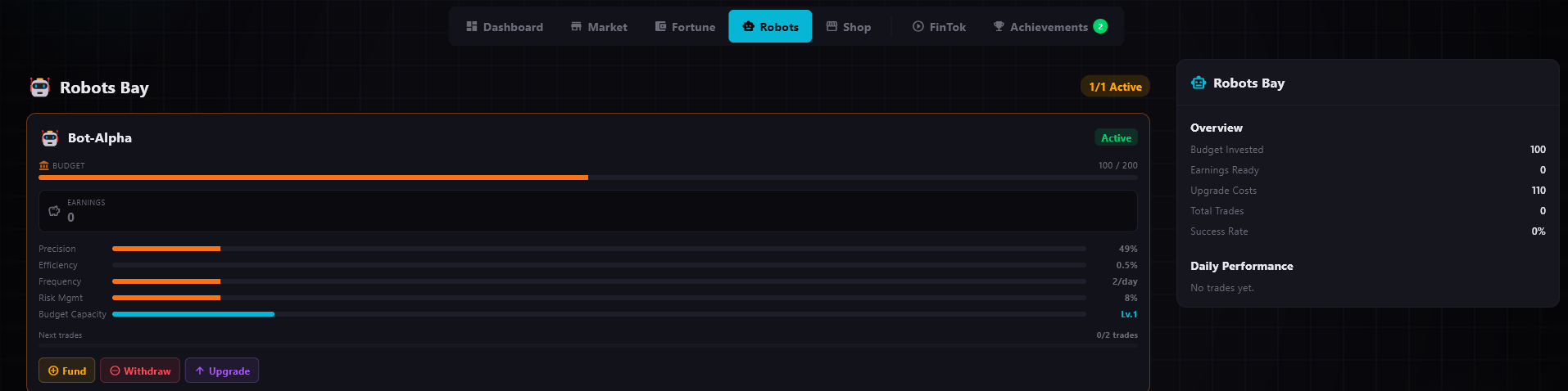 - Prestige system — earn points each day and from achievements, unlock permanent bonuses across runs