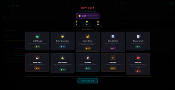 - Roguelike runs — beat the quota to keep going with harder targets, fail and spend prestige points to come back stronger
